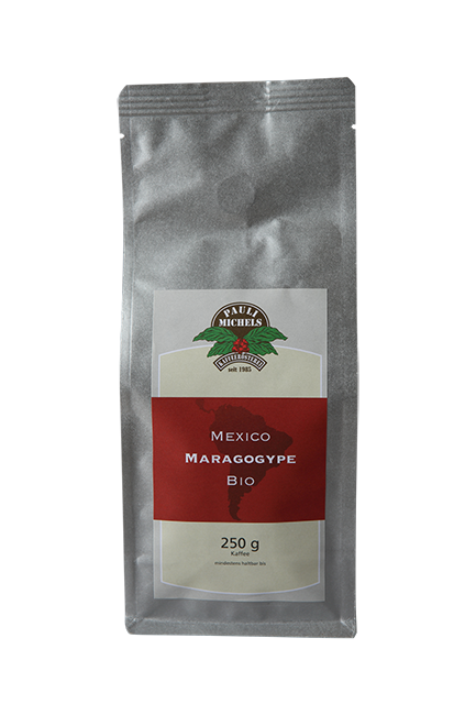 Aus Hochland-Lagen im Gebiet der Chiapas- Indianer. Diese milde Rarität rösten wir hell, langsam und besonders schonend. Maragogype zählt als edle Arabica- Unterart zu den naturmildesten Kaffees der Welt. Ebenfalls wird der Mexico Marogogype in der Finca Santa Catarina angebaut.